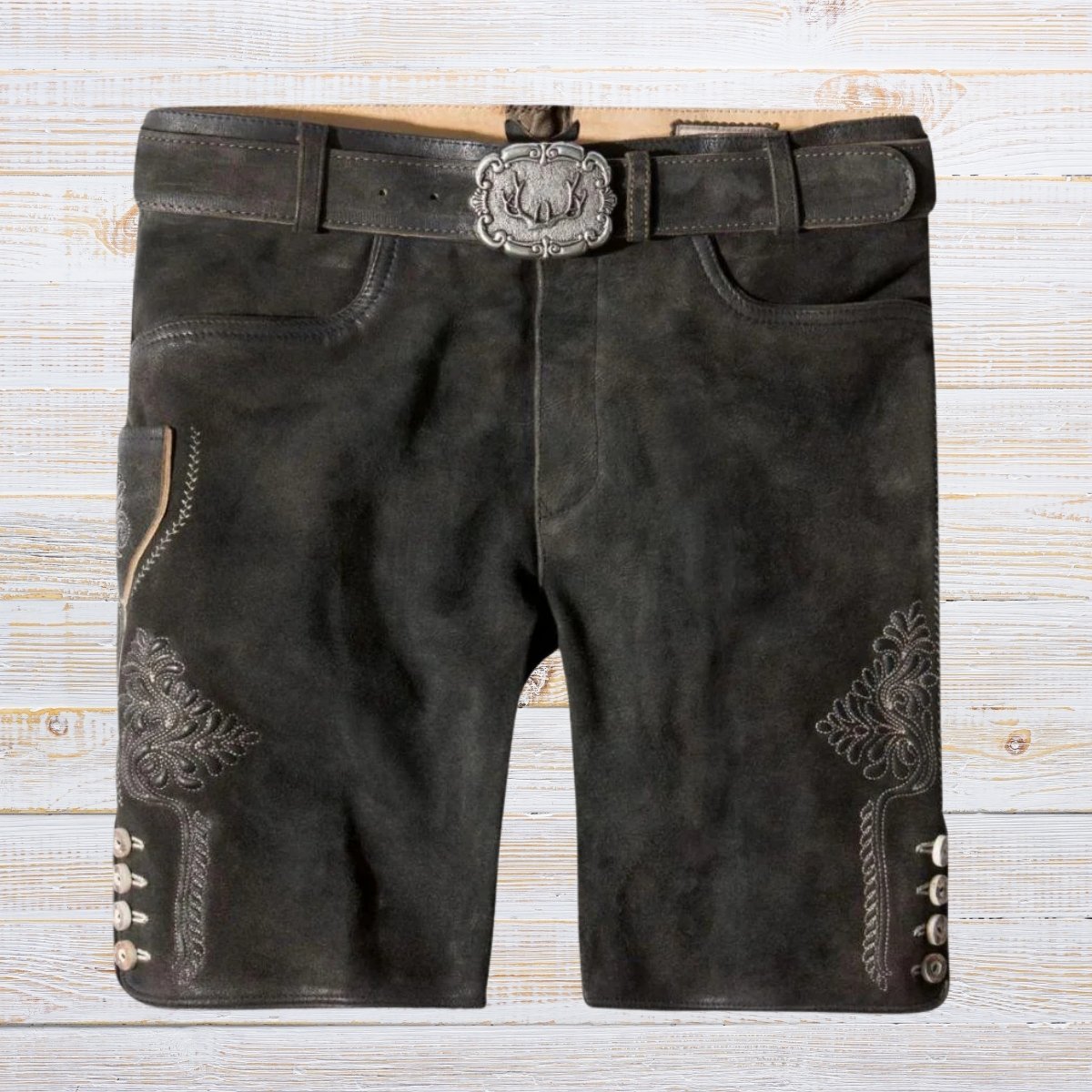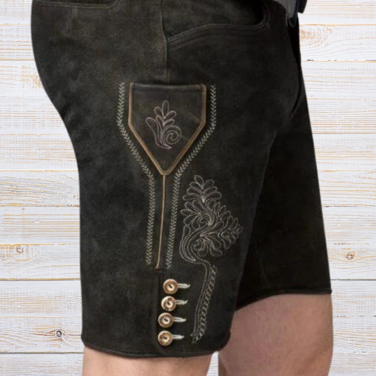 Short lederhosen are leather trousers that extend to mid-thigh or just above the knee. Unlike full-length lederhosen, they are lightweight and breathable, making them ideal for lively events such as Oktoberfest.